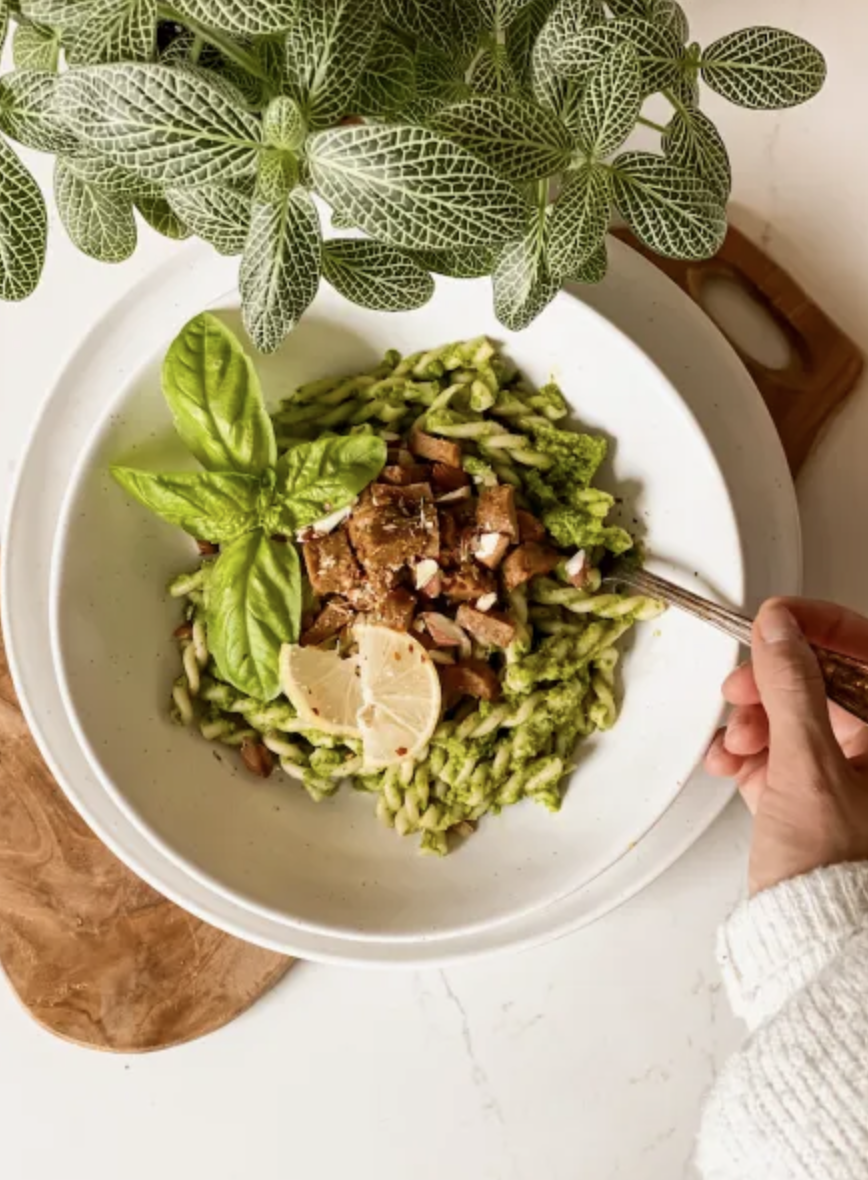 - Placez le brocoli, les épinards bébés, le basilic, la boisson végétale, les gousses d'ail, le jus de citron, le sel et le poivre dans un mélangeur jusqu'à obtenir une consistance lisse. Ajoutez plus de liquide si nécessaire.