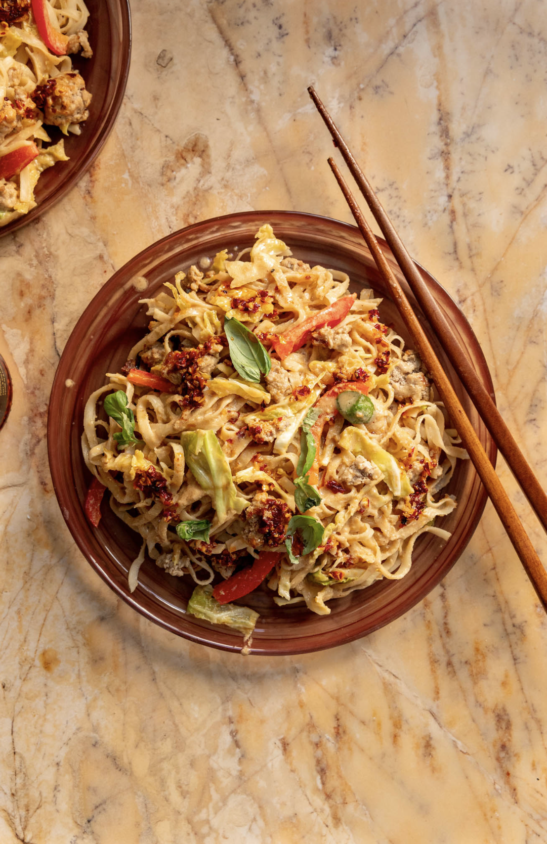 Sauté de nouilles au porc et sésame