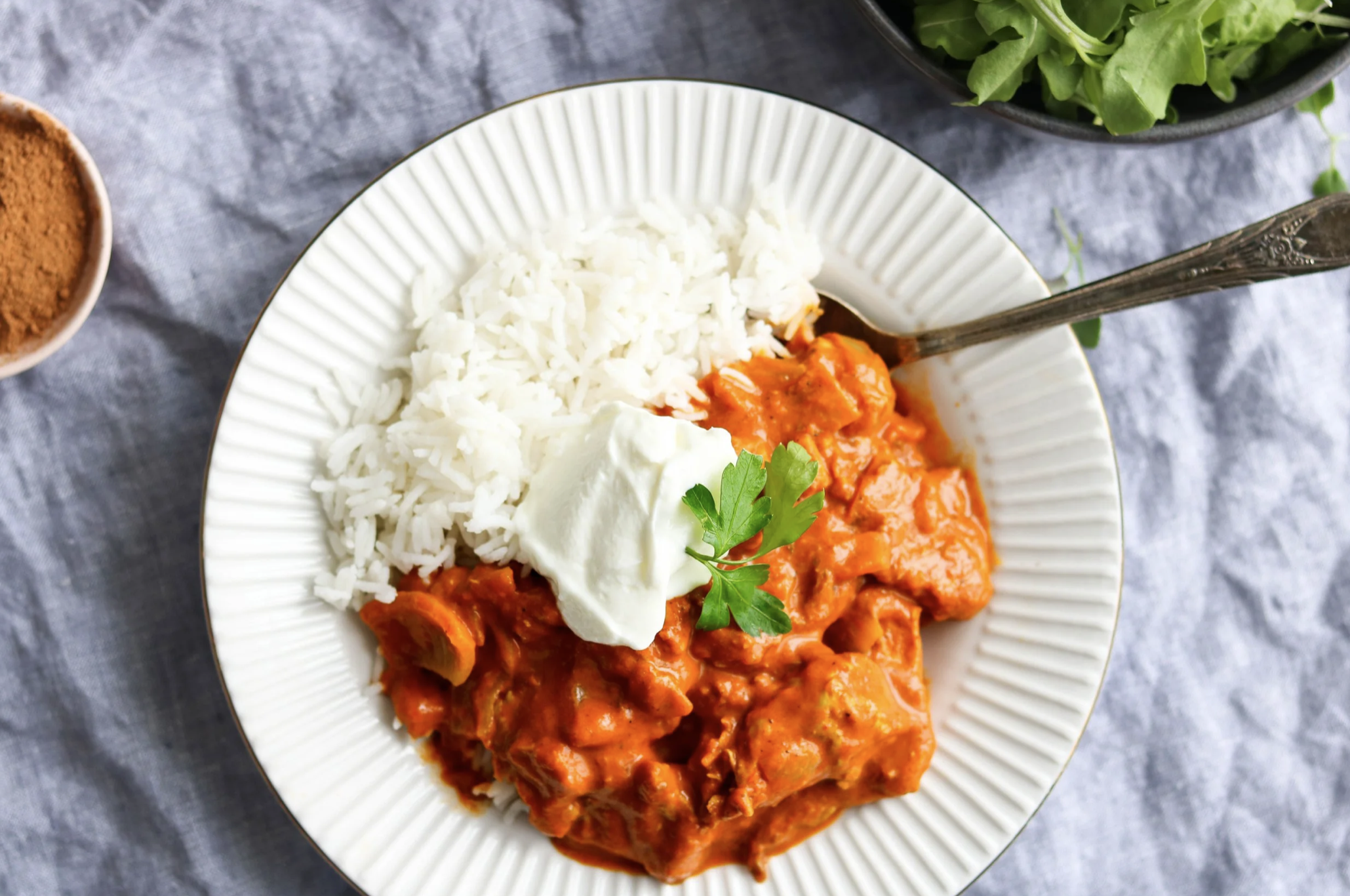 - Accompagnez de riz basmati et de salade de roquette. Garnissez de coriandre fraîche si désiré.
