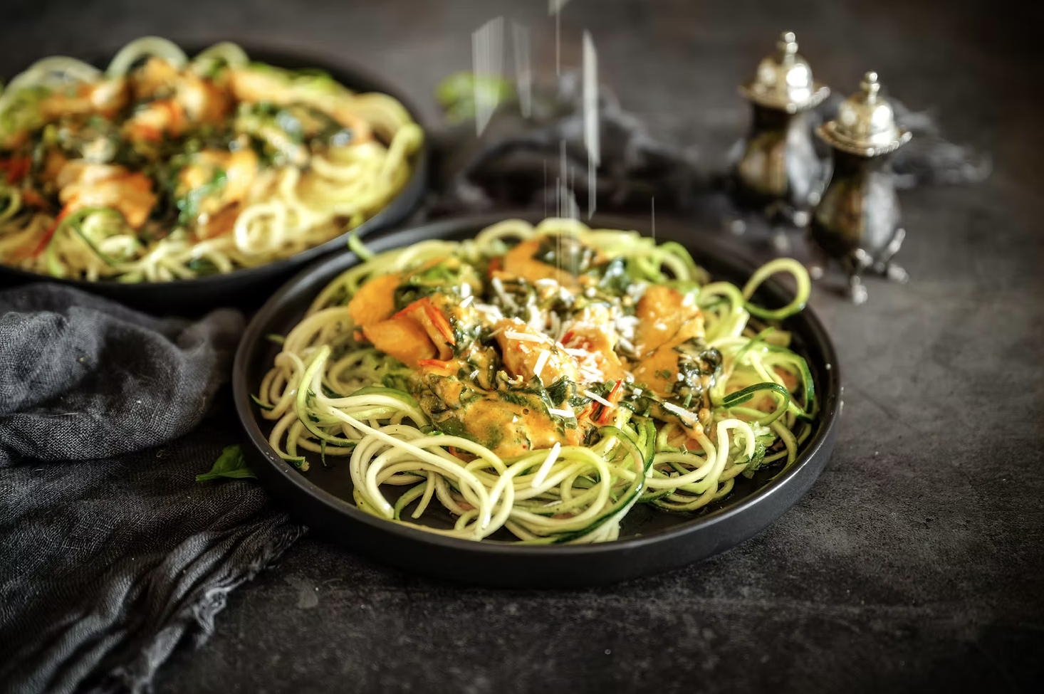 7. Dans une autre casserole, faites fondre le beurre et ajoutez les zoodles dans la casserole. Assaisonnez de sel et de poivre, puis faites cuire jusqu'à ce qu'ils soient tendres.