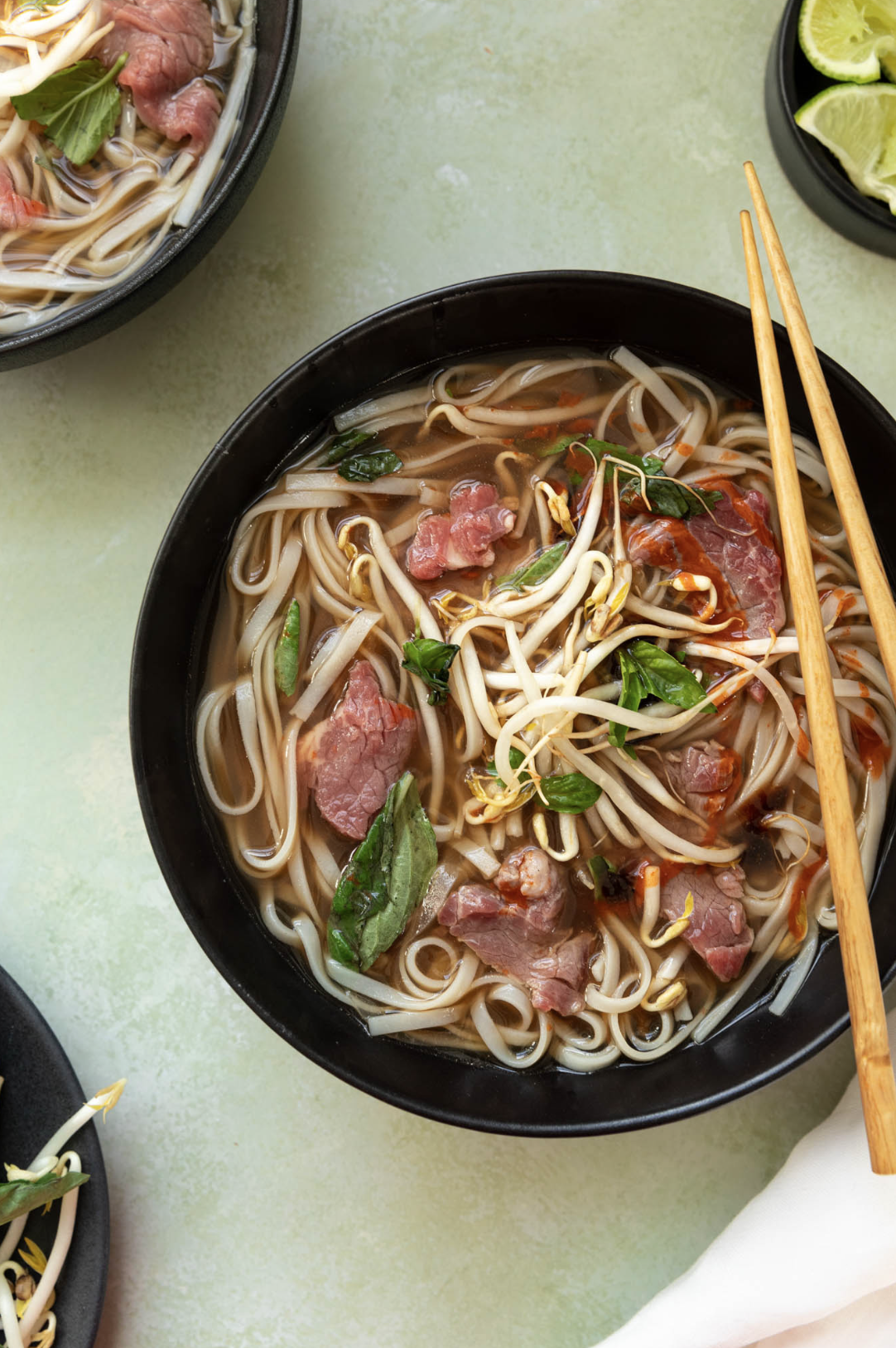 - Au service, ajouter (au goût) du jus de lime, de la sauce hoisin et de la sriracha.