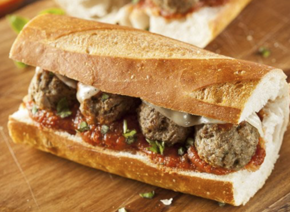 - Retirer le pain du four et ajouter les boulettes au sandwich. Verser environ 2 c. à table de sauce marinera et saupoudrer de fromage féta. Couper les tomates cerises en deux et les placer autour des boulettes. Ajouter du persil frais.